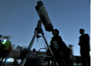 夕方から雲が広がり心配された移動天文教室。大人が望遠鏡をのぞき込むと、やっぱり星が見えない。でも、子供たちは「見える見える!」とはしゃいでいました。