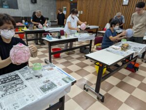 本当に見本のように仕上がるのか心配そうな参加者さんもいましたが、一日しっかり乾かせばこのとおり!中の風船を爆ざして完成させるのが待ち遠しいですね。