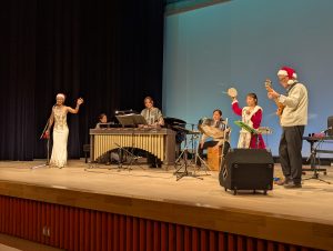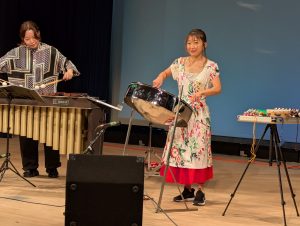 地元水窪在住のスティールパン奏者、青島貴和子さん、佐久間町在住で、バンドや佐久間吹奏楽クラブなどで音楽活動をする守下武志さん、春野町出身で声楽が専門であり、宝塚発祥の地ともいわれる春野町でミュージカル劇団「限界集落」を主宰する松井茉未さんが、クリスマスらしいコンサートで来場者を楽しませてくれました!