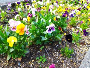 駐車場のパンジーも、初めて「きれいだね」と言ってもらえるように育てることができました(笑) 花の会の皆さんのご指導のおかげです。