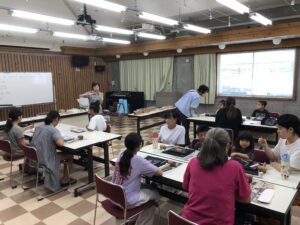 8/2は大人向けに、8/7は小学生向けに実施されました。水窪草木染めの会で用意してくれたハンカチやスカーフだけでなく、参加者が持ち込んだものを染めることもできる藍染めの体験会です。古びてしまったお気に入りの衣類やトートバッグなどが素敵によみがえり大人も子どももとても満足そうでした。