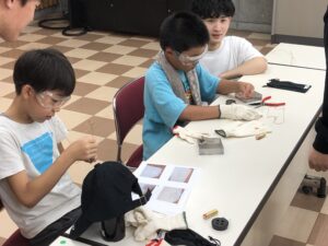昨年に引き続き、静大生による科学工作講座です。ぐるぐる巻きにした銅線と磁石で電気を起こす仕組みを利用したおもちゃを制作しました。