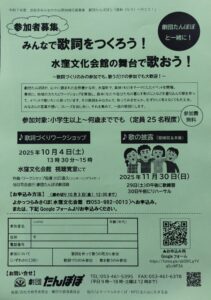 公演に先立ち、劇中挿入歌の作詞と、公演での合唱に参加してくれる地元の方を募集します!!
